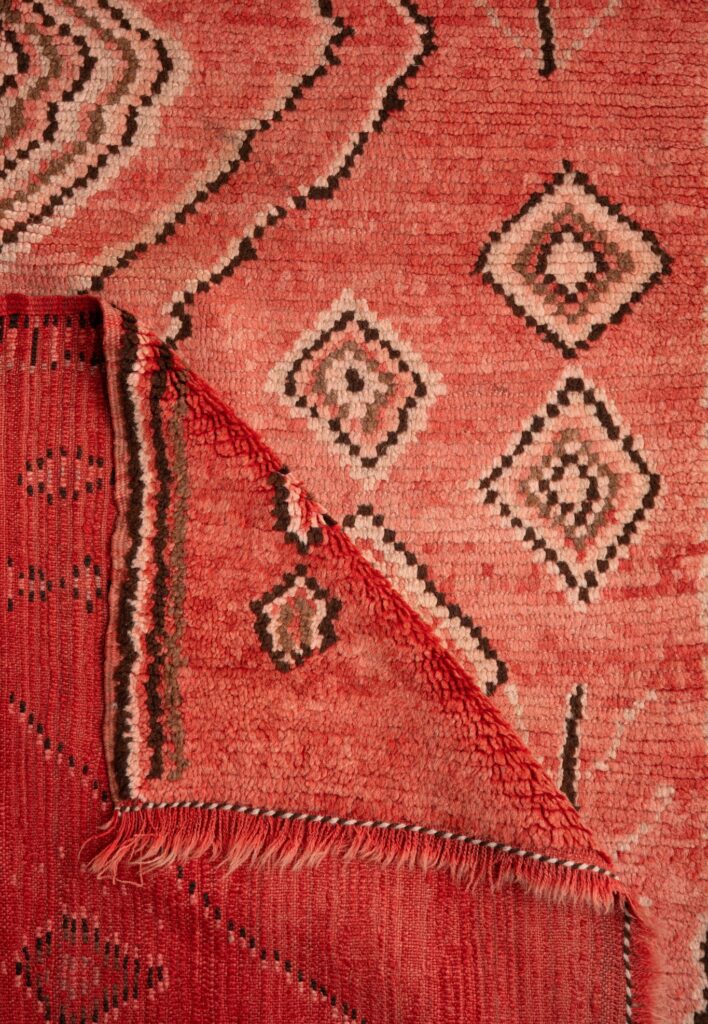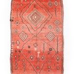 The Haouz – Marrakech rug (117×168 cm) is a masterpiece of Moroccan craftsmanship. Featuring intricate Berber motifs in deep black over a rich, warm terracotta background, this handwoven rug reflects the essence of the Haouz region. Its geometric harmony and subtle patina make it a striking yet versatile piece, perfect for contemporary and traditional interiors alike.