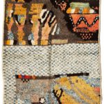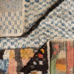 Discover the charm of our 50-year-old vintage Taznakht rug from Ait Ouaghrda. Measuring 163×106 cm, it features blue checks in the center and graphic compositions on the edges. The unique design shapes and silky asymmetry give this rug a special texture. A masterpiece that combines history and modernity.