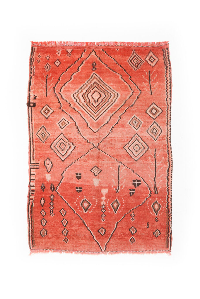 Der Haouz – Marrakech-Teppich (117×168 cm) ist ein Meisterwerk marokkanischer Handwerkskunst. Mit seinen feinen Berbermotiven in tiefem Schwarz auf einem warmen Terrakotta-Hintergrund verkörpert er die Seele der Haouz-Region. Die geometrische Eleganz und sanfte Patina machen ihn zu einem eindrucksvollen, aber vielseitigen Element für moderne und klassische Räume.