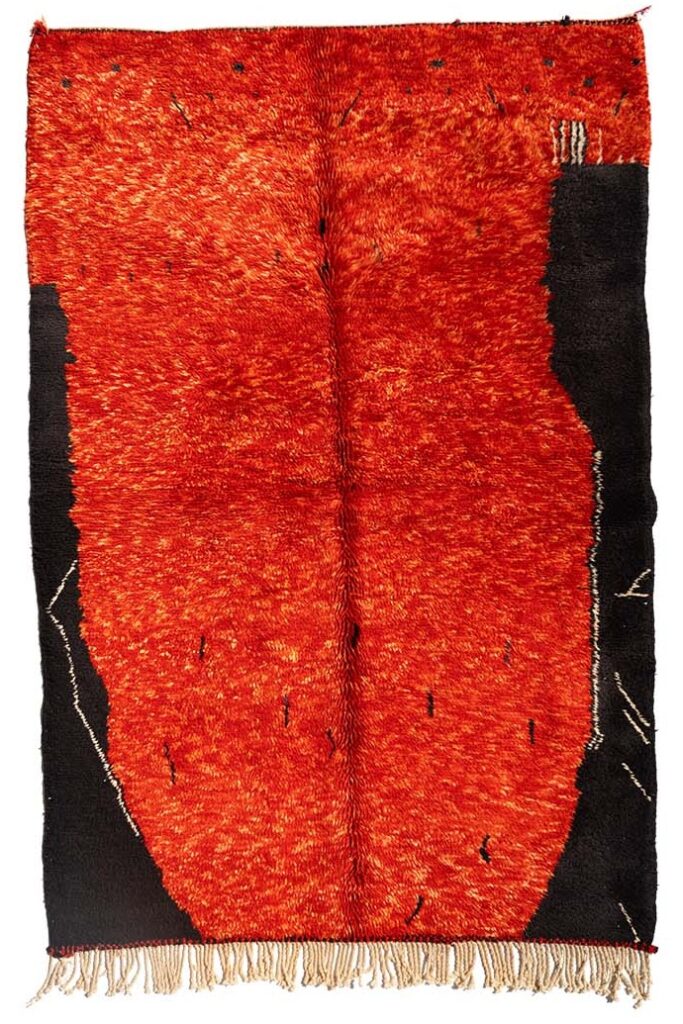 Dieser fesselnde Mrirt – Bni Mrirt Teppich zeichnet sich durch einen lebendigen roten Teppich aus, der mit zarten weissen Punkten verziert ist, die an Sterne erinnern, die über einem Zwielichthimmel verstreut sind. Die schwarzen Kanten rahmen das Design ein und verleihen dem Stück Tiefe und Kontrast. Handgefertigt mit Präzision und Sorgfalt ist dieser Teppich nicht nur ein dekoratives Element, sondern auch ein beeindruckendes Meisterwerk, das jeden Raum mit seinem himmlischen Charme aufwertet.
